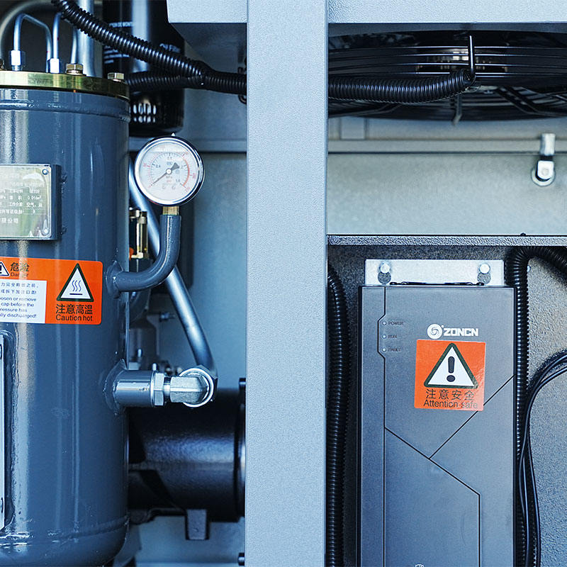 Das Design des einstufigen 20-PS-Mikroöl-Doppelschneckenkompressors unterstützt die Flexibilität bei der Konfiguration. Zhejiang Haidebao Industrial Technology Co., Ltd. stellt den Kompressor mit einer strukturellen und elektrischen Architektur her, die sowohl feste als auch variable Frequenzeinstellungen ermöglicht. Der Permanentmagnet-Synchronmotor bietet aufgrund seiner inhärenten Eigenschaften einer stabilen Drehmomentabgabe und eines geringen Temperaturanstiegs in beiden Modi eine konstante Leistung. Darüber hinaus ermöglicht die 1:1-Direktverbindung zwischen Motor und Schraubenverdichterstufe dem System einen effizienten Übergang zwischen Versionen mit fester und variabler Frequenz während der Produktion oder Installation. Ölkreislaufwege, auf zuverlässige Wärmeableitung ausgelegte Kühlsysteme und die Mikroölschmierung bleiben unabhängig von der Frequenzwahl wirksam. Dadurch können Benutzer den Kompressor in Umgebungen installieren, in denen die Wahl der Frequenz von der Betriebsplanung, der Energiebudgetierung oder den Arbeitsabläufen abhängt.